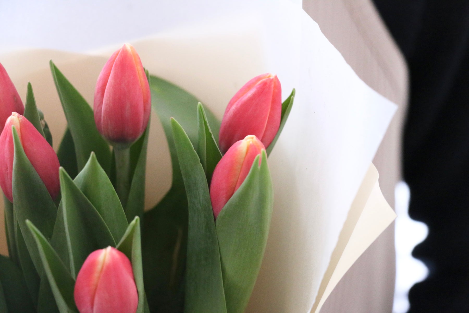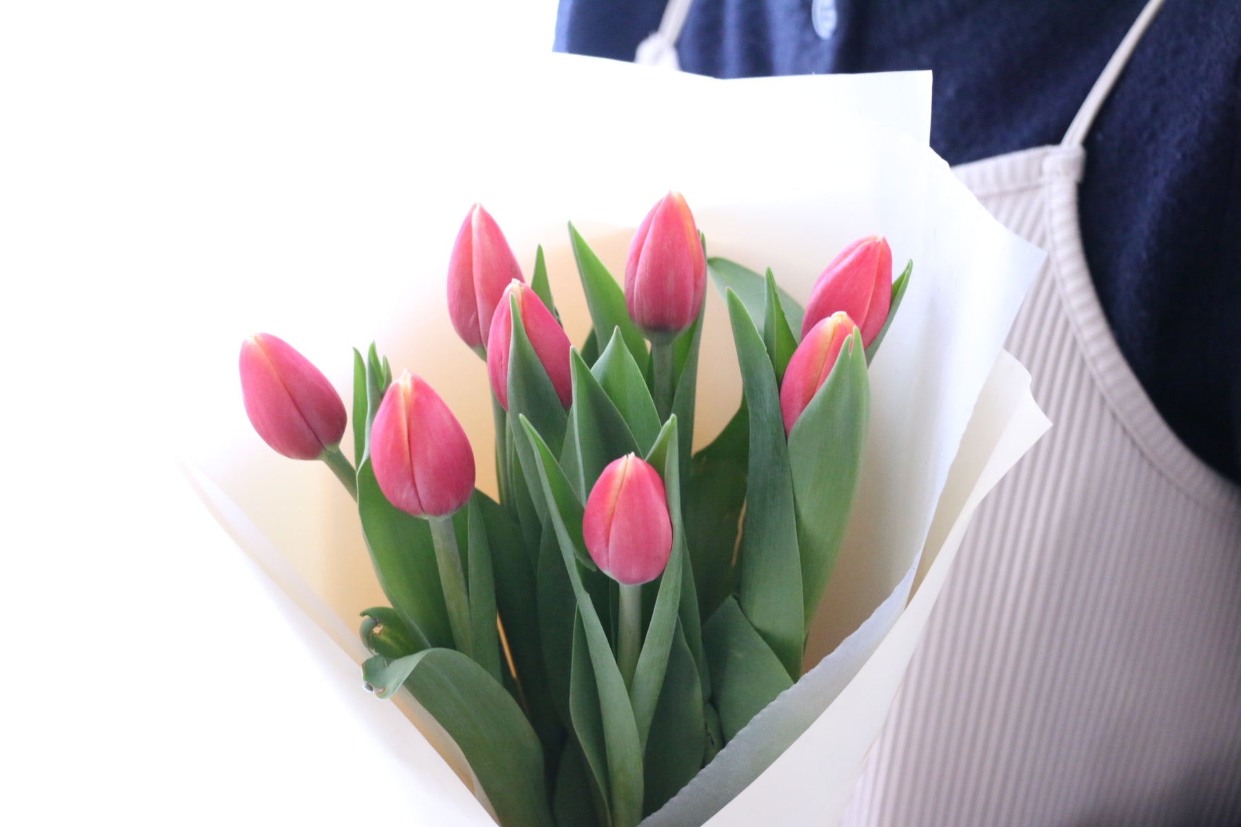 チューリップ全体(花色を問わない)では「博愛」「思いやり」などポジティブな花言葉を持っています。春の時期に旬を迎えるお花なので、卒業や卒園、送別などのプレゼントにおすすめです。