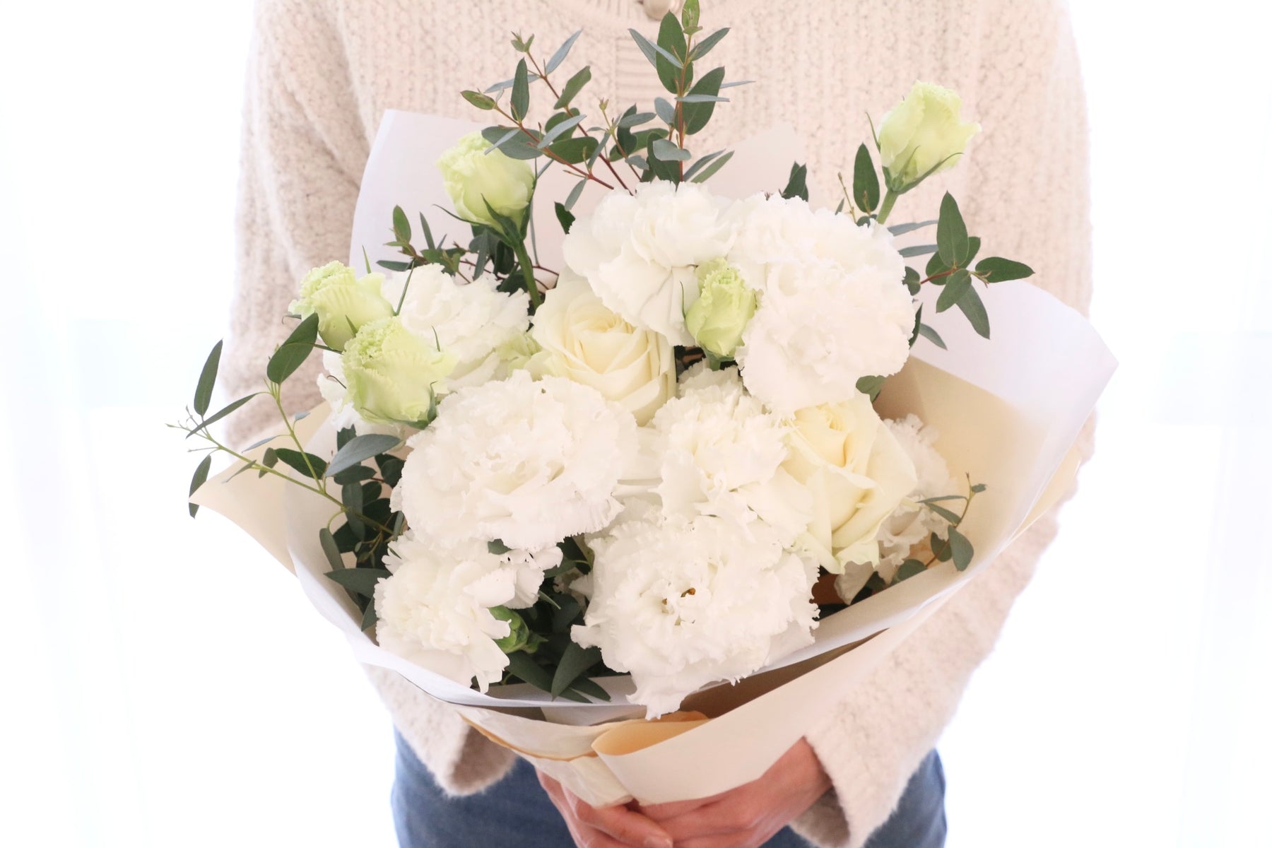 白色のお花をベースに洗練された爽やかな雰囲気で仕上げた花束です。